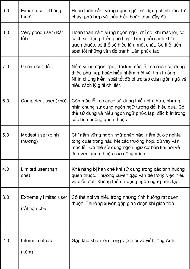 4. Thang điểm đánh giá kỹ năng Ttiếng Anh từ kết quả thi IELTS